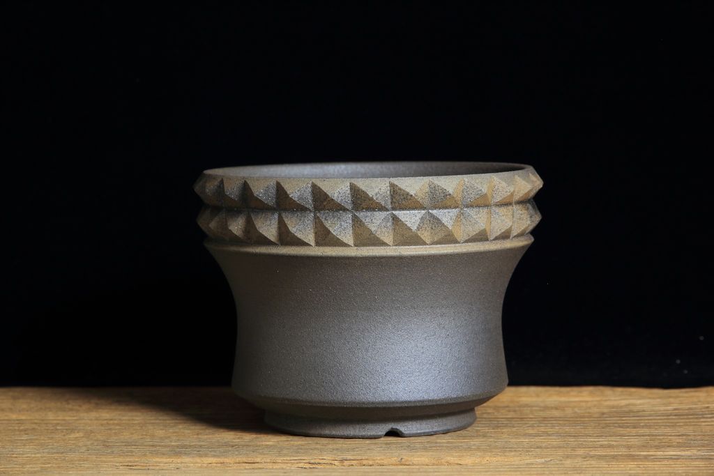 初次於日木行草販售的Arly ceramic是位於日本高知的陶藝家,作品特色是沒有上釉直接素燒,直接入窯燒製,透過爐火的溫度使盆器表面有著金屬量面的光澤感,也由於入窯燒製過程溫度的變化使得每一個盆器都有著自己獨有的風格,簡單好配的盆型搭上鉚釘狀的裝飾,絕對適合各位心愛的龍舌蘭、塊根、仙人掌😎